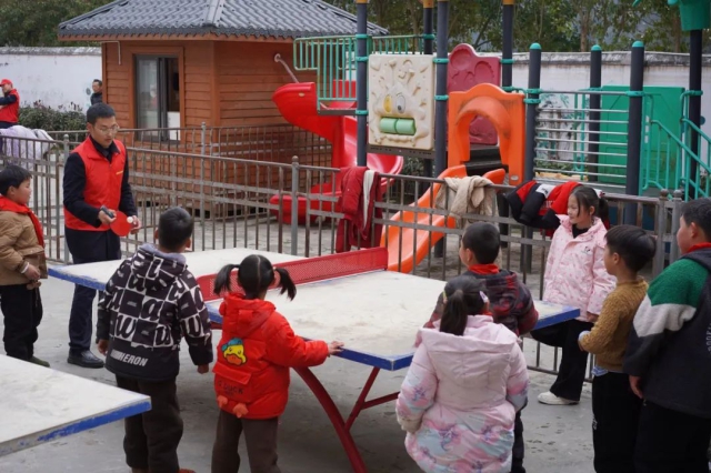 高界處青年志愿者在集團(tuán)公司定點(diǎn)幫扶村栗樹村小學(xué)與孩子們同上一堂體育課